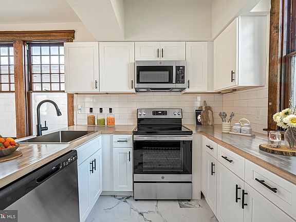 LOVELY home completely renovated on spacious lot with detached garage and mature trees! Brand new kitchen with white shaker cabinetry and solid butcher block tops, plus tile backsplash and new stainless steel appliances! Solid wainscoating, tile surround in bath, original gleaming hardwood flooring, natural original solid wood trip and doors and so much more add to this homes classic charm. ABSOLUTE MOVE IN READY MUST SEE HOME!