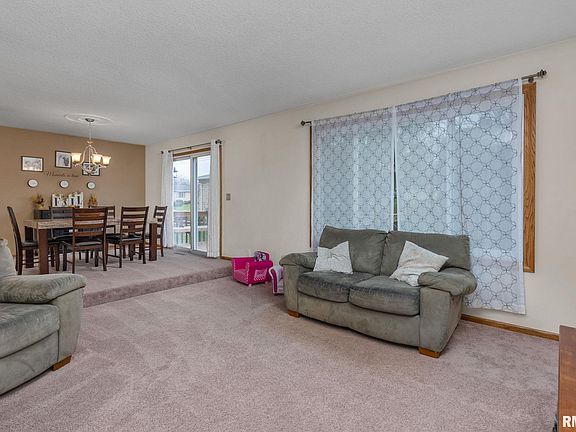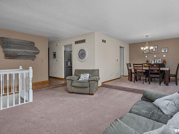 This updated Eldridge home is move in ready! 3 nice size bedrooms and 3 FULL bathrooms! Over 2,100 square feet. Large great room with slider that leads out to new deck & fully fenced yard! Updated eat in kitchen & formal dining space, new appliances 2018. 3 bedrooms on the main level. The primary bedroom has 2 closets & a attached bathroom with tile shower. The finished lower level has a spacious rec room with gas fireplace, built in bar, & 3rd full bath. Oversized 2 car attached garage 22x23. Many updates! Roof, siding, windows 2018, HVAC 2018, water heater 2020, fence 2022, deck 2021. North Scott Schools! Call for your private showing!