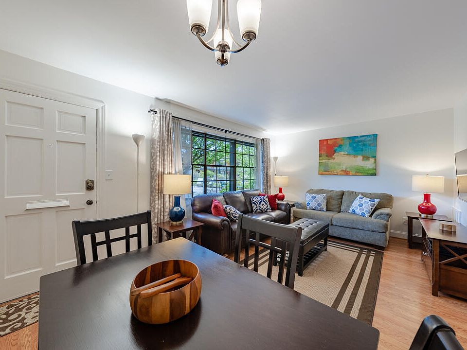 Your downtown retreat! This beautifully renovated 1 bedroom has all you need in downtown Durham. Walkable to Duke East and downtown restaurants and entertainment. Large saltwater pool at the far end of the huge courtyard. Lots of flowers and trees in the quiet, gated interior. Many thoughtful improvements throughout, including nicer woodwork, extra sound dampening, and full pantry closet. Nearby walking trail and natural wetland across the street. Located on the first floor, near the grape arbor and herb garden. (All furnishings also available.)