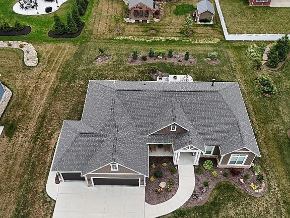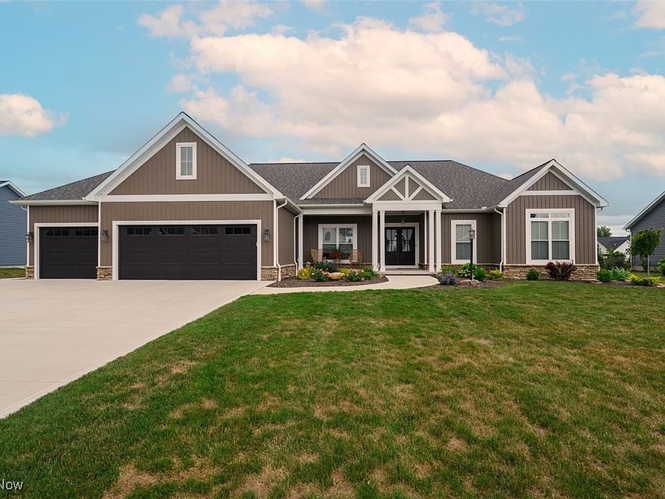 Fantastic better than new custom built Jeff Rea home! Beautifully situated on a cul-de-sac in North Canton's Pinecrest Meadows sits this stunning split bedroom ranch. Stunning landscaping with magnolia trees and dogwoods. Impressive foyer entry opens to the dining area with wainscoting And 9' ceilings. Impressive maple kitchen with a pecan finish boasts quartz countertops, an 8' long island, walk in pantry, oil rubbed bronze fixtures, designer range hood and a tile backsplash. The kitchen opens to the great room with large transom windows, built-in shelving and a gas fire place. Incredible master suite with a custom barn door to the bathroom that features double sinks, a massive tiled shower and a 12 x 8 walk-in closet! On the other side of the house are two bedrooms and a den that all have ceiling fans and double closets. Large first floor laundry room, as well as spacious mudroom with custom built-ins. Massive unfinished basement that is plumbed for a bath and has vented glass block windows. Oversized three car garage with hot and cold water, gas line and a 220 line for vehicles. This home has all of the extras with oversized trim, Schlage hardware, custom lighting from Lumen Nation and thoughtful details throughout. Wait until you see the sunrises and sunsets from the front porch and back patio! Awesome opportunity.