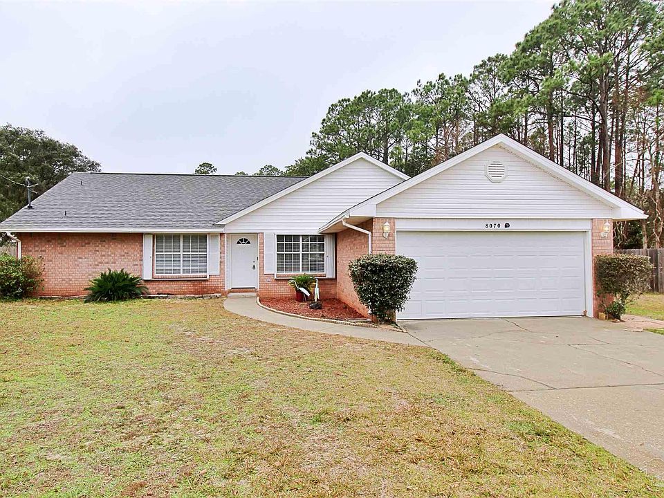 Well maintained, four-sided brick home at the end of a quiet cul-de-sac! * This home features so many amenities that are difficult to find in this price range~ immediately inside the front door, there are two bonus rooms which can be used for dining, a home office, game/play room, etc! The Great Room enjoys high cathedral ceilings and a fireplace, then leads directly into the semi-open Kitchen, which has TONS of countertop space, stainless steel appliances, a sizable pantry, and bar seating * The Master Suite is large and bright with tons of natural lighting from the windows, and the ensuite has double granite vanities, a large garden tub/shower combo, and dual his/hers closets, PLUS a linen closet, for all the storage you could ask for! The split floor plan positions the Master Suite across from the guest bedrooms for additional privacy. Each guest room is spacious and comfortable with easy access to the guest bath. * The two-car garage provides ample space for parking and even more storage * The massive back yard is fully fenced, and there is a patio covering/pergola on the deck, which is the perfect place for BBQ’s and get-togethers! * Very conveniently located just north of Gulf Beach Hwy minutes from local favorites like Gary’s and Brother’s BBQ, as well as just a short 10-15 min drive to Downtown Pensacola! *** Please verify all features, dimensions, measurements etc which may be important to you!