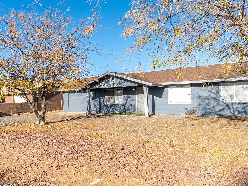 This home is located in a beautiful neighborhood conveniently near the hospital, grocery store, and Prescott Valley's Entertainment District. Thishome features a beautiful open concept living room and kitchen with 3 bedrooms and 1 bath. The garage has been converted into a master bedroomwith a master bathroom for an additional bedroom and bath, not shown in pictures. Newer interior paint and new laminate flooring will be installed in main part of home, carpet will remain in bedrooms. There is an additional room added to the back of the home thatwill be finished by 11/26/2020. Huge fenced in backyard! Don't wait to see this home, it wont last long at this price!