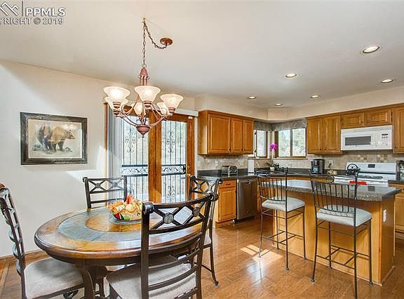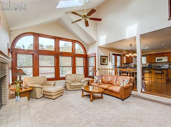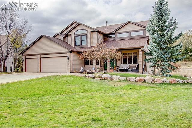 Meticulously maintained 4 bedroom 4 bath located in esteemed School District 20. Perfectly positioned in a desirable, tranquil, Peregrine cul-de-sac setting . Open Floor plan design enhanced with high vaulted ceilings and skylights invites multiple living & entertaining choices .Amenities: 3 Car Garage * Finished Walk-Out Basement *New Roof *New Windows *Newly Painted Exterior & Interior * A/C * Granite Counter Tops * High Vaulted Ceilings * Skylights *Upgraded French Drains * Sump Pump *Professionally Landscaped. The kitchen, the hub of the home , is centered between dining /living room and the family room / informal dining , opening to the back deck with stunning views. The main level includes an office with french doors tucked in a corner away from the hustle and bustle of today's busy lifestyles. The upper level is dedicated to Rest & Relaxation with 3 bedrooms and 2 baths.The roomy master has all the trappings of a luxurious five-star hotel. Walk-Out Basement has endless potential : starting with the bonus game / multimedia room with a cast iron fireplace ( read " man cave " ), an additional bedroom, full bath, a living area with a built in bar ,sink and fridge that opens to the back yard and upstairs deck. Surrounded by mature trees, dramatic rock formations with a captivating mountain backdrop. Miles of hiking , running, biking trails can be found in neighborhood's Blodgett Peak Open Space And Ute Valley Park. Regular visits from the local area wild life ...deer, bear,rabbits, squirrels, and even the neighborhood namesake , the beautiful Peregrine Falcon.Close to school,shopping and dining with easy access to I-25, Denver and Downtown Colorado Springs.
