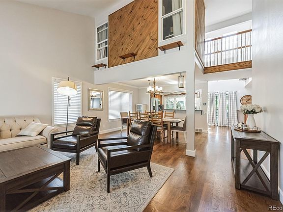GORGEOUS 2-story, single family home in desirable Ken Caryl Ranch! The spacious open floor plan boasts vaulted ceilings and recently-refinished hardwood floors. In addition to the fully-remodeled kitchen, the main level includes a semi-formal dining space, spacious front room, cozy family room with a gas-log fireplace, and a newly remodeled half-bathroom. This main level layout is ideal for entertaining friends and family! Upstairs, you’ll find four bedrooms, all with walk-in closets. The primary bedroom includes a private deck overlooking both the backyard and greenbelt, and a newly-remodeled bathroom. The newly-finished basement features a full-bath, nonconforming 5th bedroom, laundry room, and a living area. Other features of the home include two A/C units, two furnaces, a covered back patio with a drop-down ladder with access to additional storage, and plenty of backyard privacy from the mature trees and landscaping. Beyond the back gate is a greenbelt, perfect for additional outdoor activities, including excellent sledding in the winter months! Fruit-bearing trees and bushes on the property: peach, pear, plum, nectarine, and raspberry. Ken Caryl amenities: three pools, recreation center, disc golf course, equestrian center, tennis courts, multiple playgrounds, several community gatherings and events, and access to PRIVATE hiking and mountain biking trails and campsites! This home will not last long! Call now to schedule your showing!