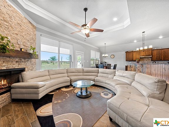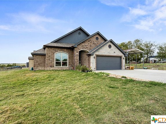 Discover the charm of Texas sunsets from this exquisite custom home nestled on 16 acres and built by award-winning Cory Herring. This 4Br/2Ba masterpiece, accentuated by a brand-new 30ft x 40ft shop, is an epitome of craftsmanship and design. With the added advantage of an AG EXEMPTION for property taxes and water infrastructure for the pasture, it's an ideal haven for your animals and 4-H endeavors. The manicured pasture can be utilized for hay production if desired. Enclosed with complete fencing and cross-fencing, the property also showcases a stock tank. The interior reveals an arched wood ceiling adorned by dual chandeliers. A stacked rock, wood-burning fireplace takes center stage in the living room, and the kitchen, flowing seamlessly into the main living space, boasts a wet bar with a wine refrigerator. The thoughtfully designed split bedroom floorplan provides direct access from the master bedroom closet to the laundry room. Further benefits include spray foam insulation, proximity to Temple, swift access to I-35, and Academy ISD zoning. Freshly painted and radiating freshness, this property is a Central Texas treasure waiting to be claimed. Don't miss this rare offering!