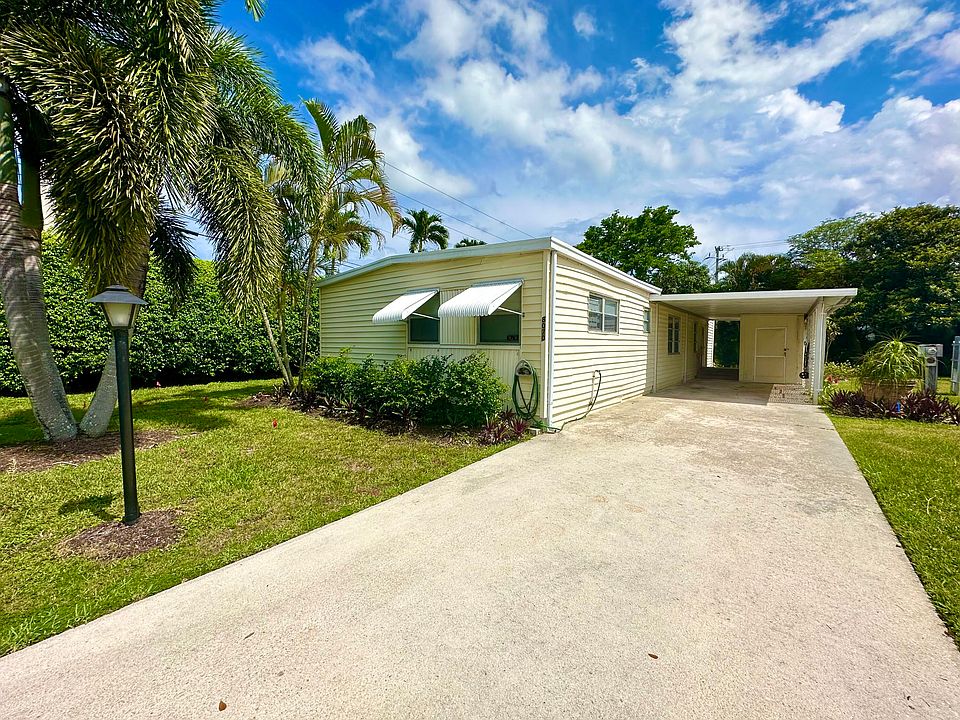 Explore this incredible gem located in the exclusive 55+ community of West Lakes in Boca Raton, FL. Last house on the street with no neighbors on your east side, very private back yard. Close to shopping, restaurants, and the turnpike you'll find this updated 2 bedroom 2 bath mobile home extremely spacious. Relax in your private outdoor fully screened in porch off of the living room. Newer upgraded kitchen cabinets. Plenty of storage both inside and out. Newer A/C unit. HOA includes many amenities such as cable, pool, laundry, shuffle board, community kitchen and much more! Measurements are approximate.