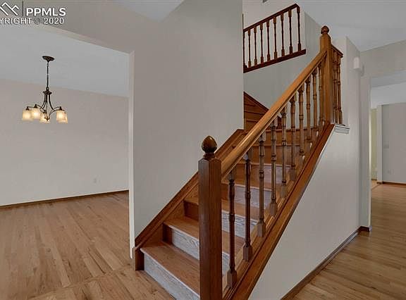Pristine low maintenance stucco home backing to open space in the desirable Peregrine neighborhood. Just steps away from D-20 Woodmen Roberts Elementary School, Woodmen Valley Park, tennis courts, hoodoo rock formations, trails and Blodgett Open Space. This home has been lovely maintained and updated by the original owners. The entryway is a grand foyer leading to the gourmet kitchen and formal living & dining rooms with extensive newly refinished hardwood flooring on the main level. The great room open to the kitchen features a fireplace and custom built ins and an updated bath. The cook of the house will love this chefs inspired kitchen featuring custom cabinetry including soft close drawers & pull outs & crown molding all made of Alderwood, a Bosch induction range top with hood, double ovens, under counter microwave, dishwasher, Bosch refrigerator, and expansive granite with custom backsplash. Spacious master retreat includes a newer 5 piece master ensuite bath with heated tile flooring & elegant one of a kind cabinetry. Brand new carpet and fresh paint throughout the home. Newer high efficiency furnace and central air. Finished basement with flexible options for an additional bedroom, a full media room, game room or multiple home offices and extra storage. Extensive landscaping including a low maintenance private yard that backs to open space with no neighbors behind and a front raised patio area to enjoy. Pride of ownership really shows! Dont miss your chance to be the second proud owners of this turn key home!