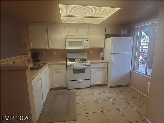 Southwest Las Vegas. Very cute two bedrooms, one bathroom condo. No building behind this unit. View of mountains. Gated community with pool/spa and tennis court. Buyer to verify info.