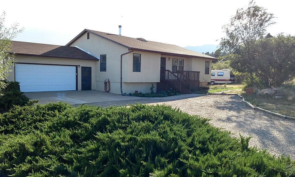 Come home to this well maintained 3062 Square Ft house with four bedrooms and three FULL bathrooms. There is a large living room upstairs and a large family room downstairs. Interior features include new carpet and fresh paint throughout the home, a water heater that is only three months old, a log fireplace upstairs, a gas freestanding stove downstairs, a large laundry room with a utility sink and much more. The sale of this property includes four lots that provide almost an acre of land area. Enjoy the great views of the Mountains and the Valley from the 41ft x 10ft wood deck with an awning or the 41ft x 10 ft concrete patio downstairs. There is an RV pad with all hookups. Located in GreenHorn Valley which is only 20 minutes South of Pueblo. You will find many amenities in this small town, including banks, churches, a pharmacy, medical center, auto service center, grocery store, library and much more. Enjoy Lake Beckwith which is only minutes away where you can fish and kayak. This community offers the peace and tranquility you have been seeking.