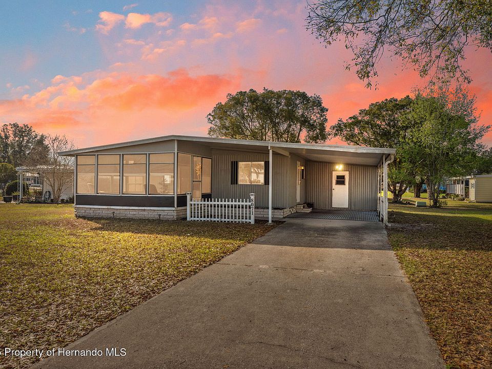 Charming Fixer-Upper in Desirable Brookridge Community! This 2-bedroom, 2-bath home offers a fantastic opportunity for investors or buyers looking to add their personal touch! With 736 sq. ft. of living space, this home features a metal roof and HVAC system(2023), providing a solid foundation for future updates. Located in the sought-after Brookridge 55+ gated community, residents enjoy access to a clubhouse, pool, golf course, and a variety of amenities and activities. While the home needs some TLC, it has great potential to become a cozy retreat in a prime location. Don't miss this chance to create your dream space in Brookridge!