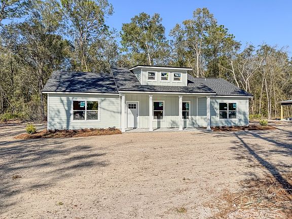 This stunning new construction is a rare find! Located in the desirable Silver Oaks neighborhood, this beautiful 3bd/2ba home sits on a half-acre wooded lot, providing a private and peaceful retreat. As soon as you arrive, you'll be impressed by the large front porch and easy-care cement fiber trim and siding, as well as the landscaped yard and millings driveway. Step inside to a spacious and bright interior featuring 9 ft exterior walls, cathedral ceilings in the great room, and plenty of windows that flood the space with natural light. The luxury vinyl wood plank flooring, wood cabinetry, granite countertops, stainless steel appliances, and large island with snack bar in the kitchen make this home perfect for entertaining. The large master bedroom features a tray ceiling and a luxurious en-suite with granite countertops, under-mount dual sinks, and a tiled shower. The other two bedrooms are also generously sized, providing plenty of room for a growing family or hosting guests. Enjoy the beautiful trees and nice patio in the private backyard. Low Levy County taxes make this home even more affordable. Don't miss your opportunity to own this beautiful and convenient home, located just around the corner from Fanning Springs State Park and the Suwannee River. Make an appointment to tour this home today! Estimated completion in Febuary 2024. This home qualifies for 100% USDA financing
