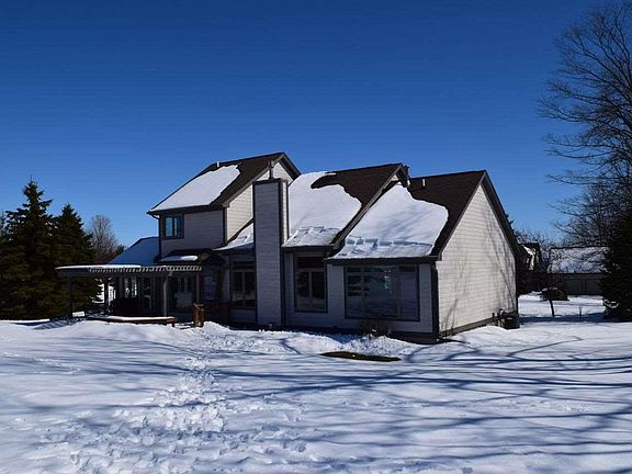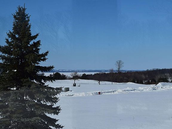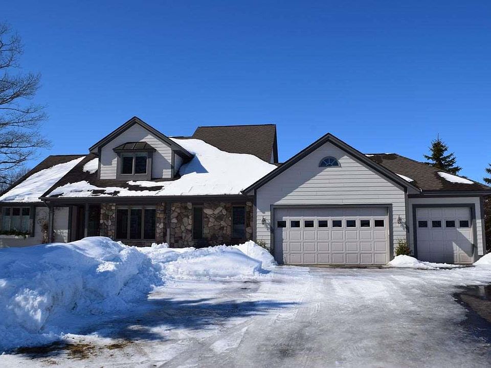 Looking for views of both East & West Bay water and shared waterfront with community dock - well look no further - here it is! This lovely 4 bedroom, 3.5 bath home has a lot to offer. You'll find a well thought out laundry and mudroom plus a beautiful remodeled kitchen which is light and bright with white and gray cabinets, quartz counter tops, hardwood flooring and a nice 4 season cozy sun room off the kitchen. What a perfect place to relax and enjoy. Vaulted ceiling and stone fire place in the living room plus a main floor master suite, 3 additional bedrooms on the upper level and a finished lower level with a generous family room with fireplace and a new bathroom. Plenty of room to store your lawn equipment in the 3 stall attached garage.