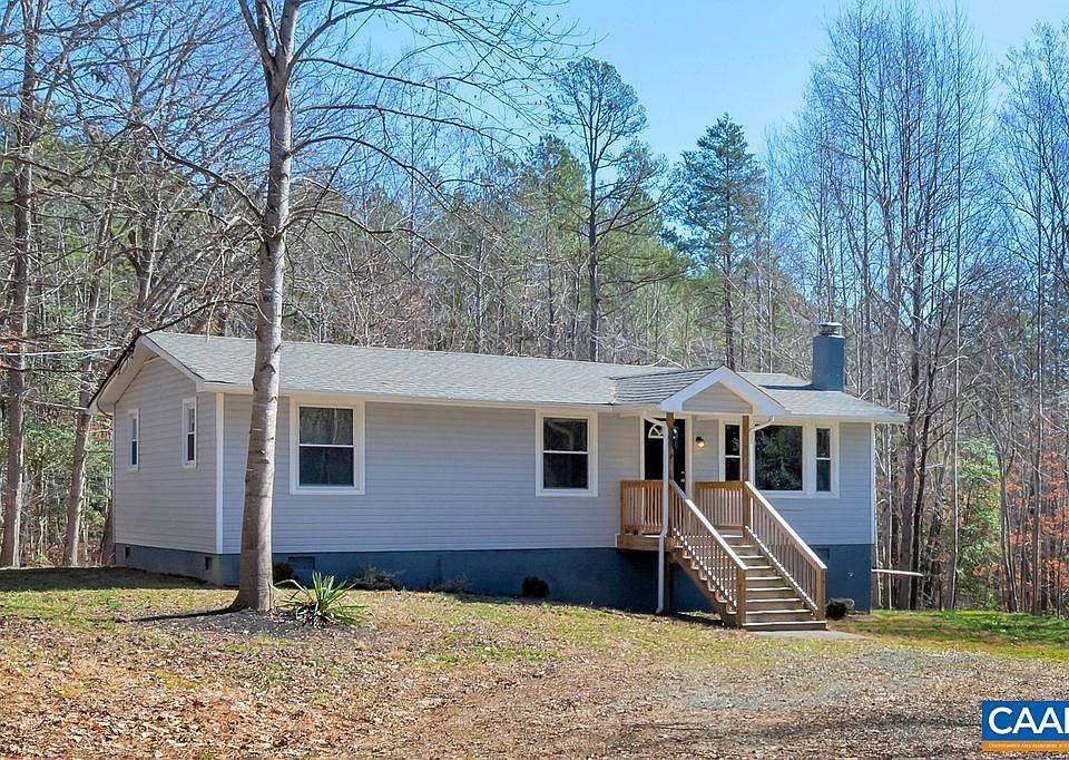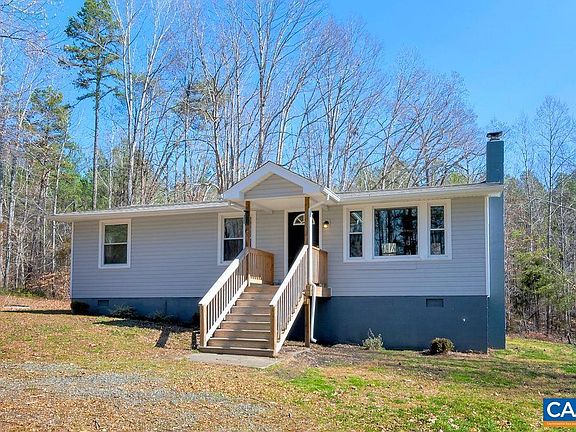 One story, renovated home in Esmont. Privately nestled on 3.7 acres surrounded by hardwoods and holly trees. Circular drive with generous parking. In 2020 these improvements were made: wood floors in great room, kitchen, and hallway, carpet in 3 bedrooms (all with overhead lights), ceramic tile floors in laundry and full bath with tile shower and new vanity. Kitchen -Soft close cabinets, granite counters, and stainless appliances. Sunny great room has recessed lights and a wood stove. Vinyl double pane windows, new roof and vinyl siding, 8x10' rear deck and 6'x5.5'covered front porch. Heat Pump, electrical, and plumbing updated 2020. Utilities: average electric $118/mon., Trash $29/mon, Century Link internet $50/mon. Well and septic. Short drive to Albemarle County Simpson Park and Yancey Community Center.