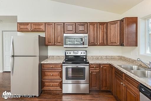 3 bed 2 bath single family home. Radiant in floor heat, open concept kitchen and living room with vaulted ceilings, stainless steel appliances, heated garage, washer and dryer in home.Amazing views and trails all over this area very close to Hatchers Pass Recreation Area.Only about 8 minutes to Palmer and new Fred Meyer, or about 10 minutes right to Trunk Rd and the Parks Hwy