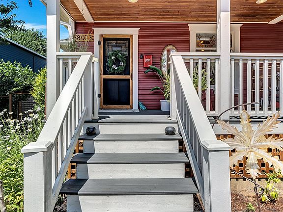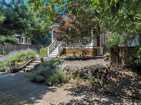 This charming St. Johns bungalow has amazing features through out and has seen an abundant amount of care! Walk into a roomy high ceiling naturally lit living area flowing to the modern chef's kitchen boasting granite countertops, complimentary cabinetry, gas range, and double sinks. Primary is on the main including a private ensuite and balcony! Single bedroom upstairs with a skylight, walk in closet, and wall to wall carpet. Ample space for storage in the unfinished basement including washer a dryer. Great deck overlooking the fenced in backyard with outbuilding! [Home Energy Score = 2. HES Report at https://rpt.greenbuildingregistry.com/hes/OR10220047]
