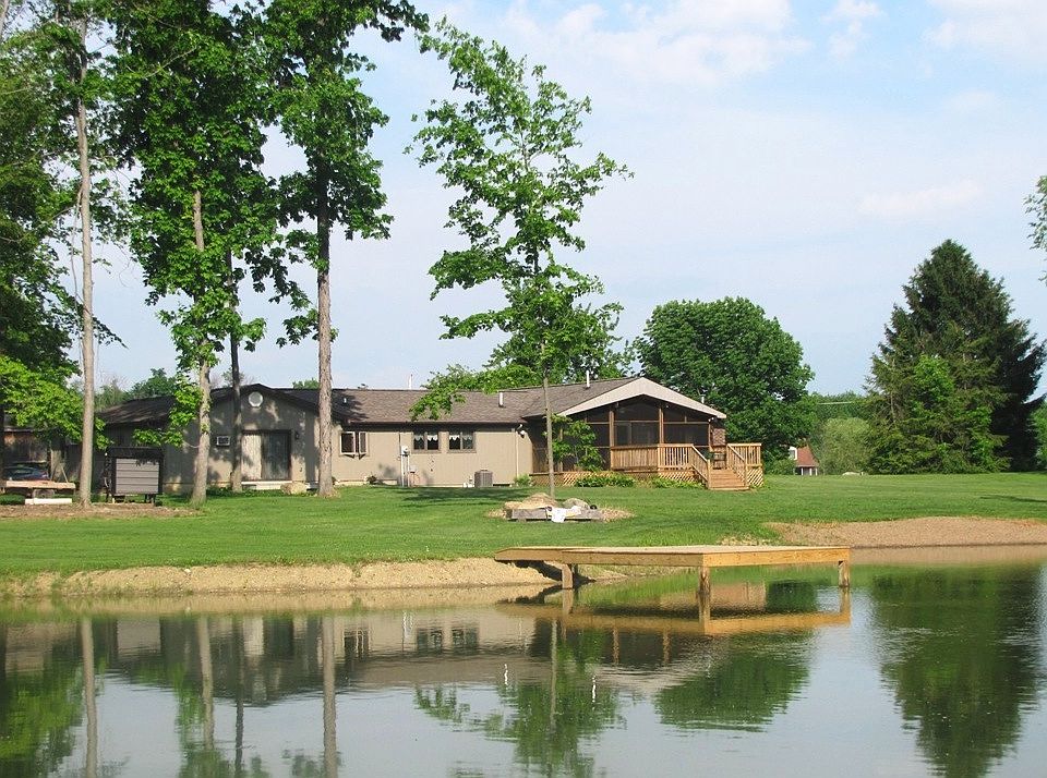 An equestrian's dream property - a sprawling 3010 sf ranch - (phase 1 built in 1971, large addition in 2003) and magnificent 140x60 indoor riding arena w/3 lg stalls, tack room, hay storage and overhead sprinkler system. There's also an outdoor exercise ring & a fenced-in paddock. A gorgeous new pond w/dock and beautiful woods complete the scene - 7.45 acres in all. The home has a generous open floor plan with huge rooms that invite easy living. The south side Great Room includes a superb kitchen w/maple cabinetry, granite counters, cork flooring. The living area has a slate floor, an all glass conservatory, and it opens out to a screened-in porch with masonry gas grill, opening to large deck overlooking pond. An elegant dining room is the bridge between the Great Room and kids/guest suite on south and, on the north, the master suite (with its own private deck) and a 30x24 rec room with a wet bar crafted from African mahogany and tons of room for play and relaxation. Vaulted ceilings and 6 panel doors thru-out. Other features include a 2 car garage and a 30x24 equipment shed w/loft. Worried about energy cost? Relax and enjoy a high tech outside wood burner (enough wood is seasoning to keep you warm for years!) and a new high efficiency propane fueled boiler that deliver efficient radiant heat throughout the home. A new central air conditioner cools the central section of the home, supplemented with window units and ceiling fans. This unique property is in a serene, bucolic setting yet it is only minutes away from I71,I76, Medina and Wadsworth.