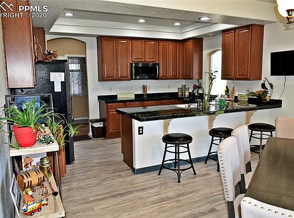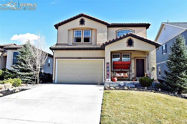 Large, beautiful home in excellent condition in Highly desired Banning Lewis Ranch area with 4 bedrooms and 4 Baths, Landscaped yard, Tile Roof and Stucco Exterior. Ready to move into. Pikes Peak View from Master bedroom and Loft Family Room, New Paint inside new floors in Kitchen and Living Room. Central Air and Humidifier, Home alarm system, sprinkler system which includes garden area, All new appliances and many benefits from HOA to include gym, swimming pool, basket ball court, tennis courts, kids water park, dog park and many walking Trails. Walking distance to elementary schools and new zipline for kids.