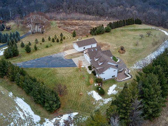 Must see! High-quality custom-built 4 bedrm, 4 bath walk-out rambler on 4.64 acres. Enjoy the peacefulness of the country less than 2 minutes from town. Lots of garage space - 26'x36' attached 3 car garage w/ 2 floor drains & 24' x 46' outbuilding with 12' door. In-floor heat throughout basement, main floor, bonus room and garage, with closed cell foam insulation under basement, garage floor, walls and in attic. Steel siding, seamless gutters and a new roof in 2020. Enjoy private views from either the Cedar front porch and large rear screen porch and courtyard style patio from the walk-out basement. The interior is full of upgraded features like Andersen windows & custom cabinetry throughout. Kitchen has enormous granite island, double ovens, & tall tub dishwasher. Extensive low voltage fiber optic wiring - perfect for working from home. Bonus room over the garage has skylights & private mini split AC. 450 sq ft storage room under master Bdrm. See attachment for even MORE features!