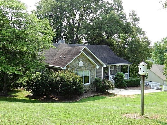 Beautiful 2BR, 2BA lakefront property with a LICENSED dock & huge back deck w/ amazing lake view. 1 level living with a extra large unfinished lower level with garage, ready to be finished for guest suite & and is plumbed for a bathroom. House sits on over 1 ac ( with an additional adjacent lot that comes w/ property). Light and airy, open floor plan with large windows on the rear of the house, underground electric dog fence included. The remodeled owners bath is large and gorgeous with jacuzzi tub and custom cabinets! Arched doorways into the bright kitchen and into the the dining and den that boasts a beautiful marble fireplace. The deck leads down to a large floating,lighted dock and with 200' of lake frontage it is the perfect place to make a lakeside oasis. The extensive rock work along driveway with an overlook to the back, large deck and the serene, mature landscaping will make this your permanent vacation home every day!! Call us for a showing, you must see to appreciate!!