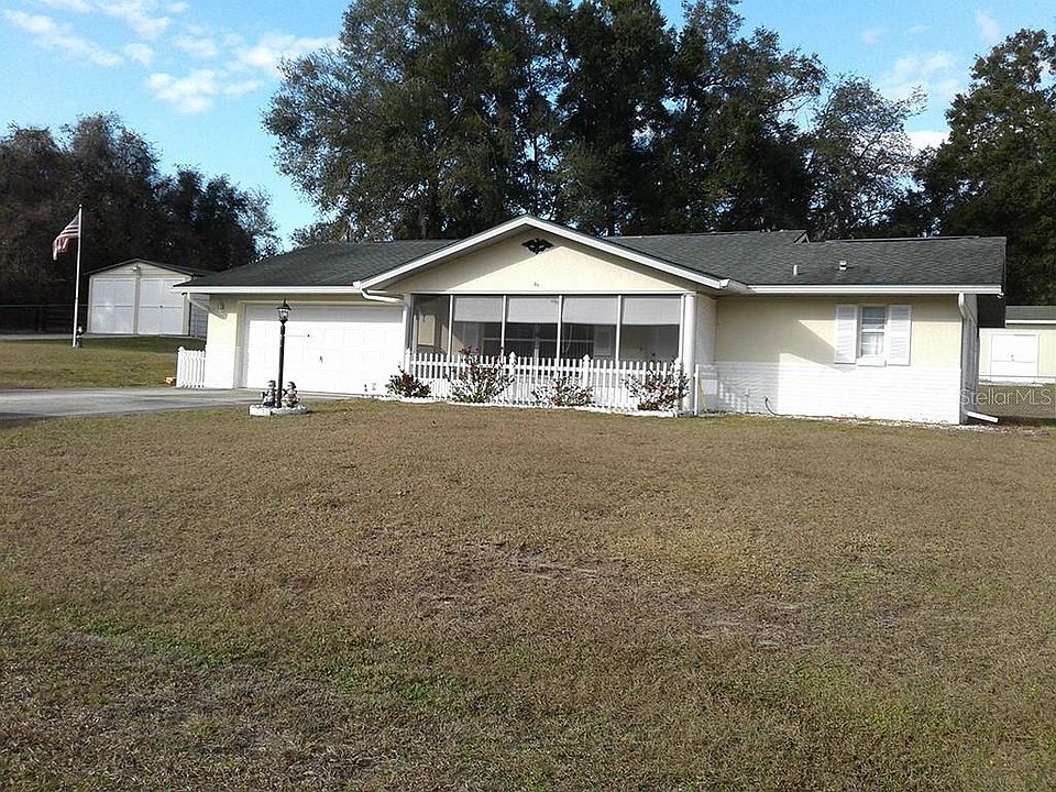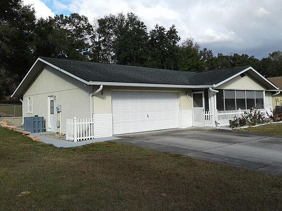 Floral City, Citrus County, Florida - lovely 2 bedroom/2 bath home in the country on almost 3/4 acre! This home features brand new kitchen cabinets and stove, brand new laminate flooring, fresh paint inside and out, new bathroom commodes, new A/C compressor (all in 2019). Plenty of storage including a 2 car garage, tool shed, plus a golf cart garage with 2 spaces and its own driveway. Backyard is completely fenced and has its own irrigation well.
