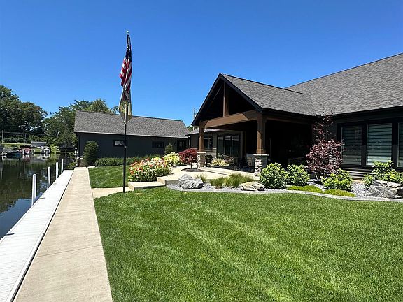 Gorgeous, B&B Builders custom built home with 91' frontage on prime Lake Wawasee channel. Includes boathouse and 2 additional back lots. 3 beds, 2.5 baths, 3 car garage, white trim and fabulous finishes. Drop dead beautiful landscaping, new pier. This one checks all the boxes!