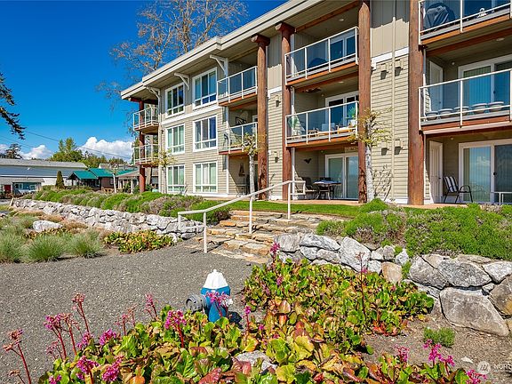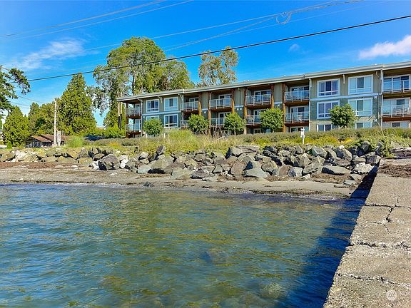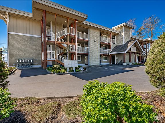 Top corner OCEANFRONT condo at the highly desirable Sands Condominiums in Birch Bay! Easy open floorplan with laminate flooring includes comfy den PLUS oceanfront living room with cozy gas fireplace. Your private deck includes a storage closet & has room for dining or lounge chairs for relaxing, enjoying the sunset & just taking it all in! Kitchen includes all stainless appliances plus more beach views from the side window. Spacious primary bedroom also boasts a STUNNING view, double closets & an ensuite bathroom. Guest bedroom & bathroom, plus in-unit washer & dryer complete everything you need for a getaway vacation spot or full-time living. Enjoy the walking trail, crabbing, clamming, boating and all the best Birch Bay has to offer!