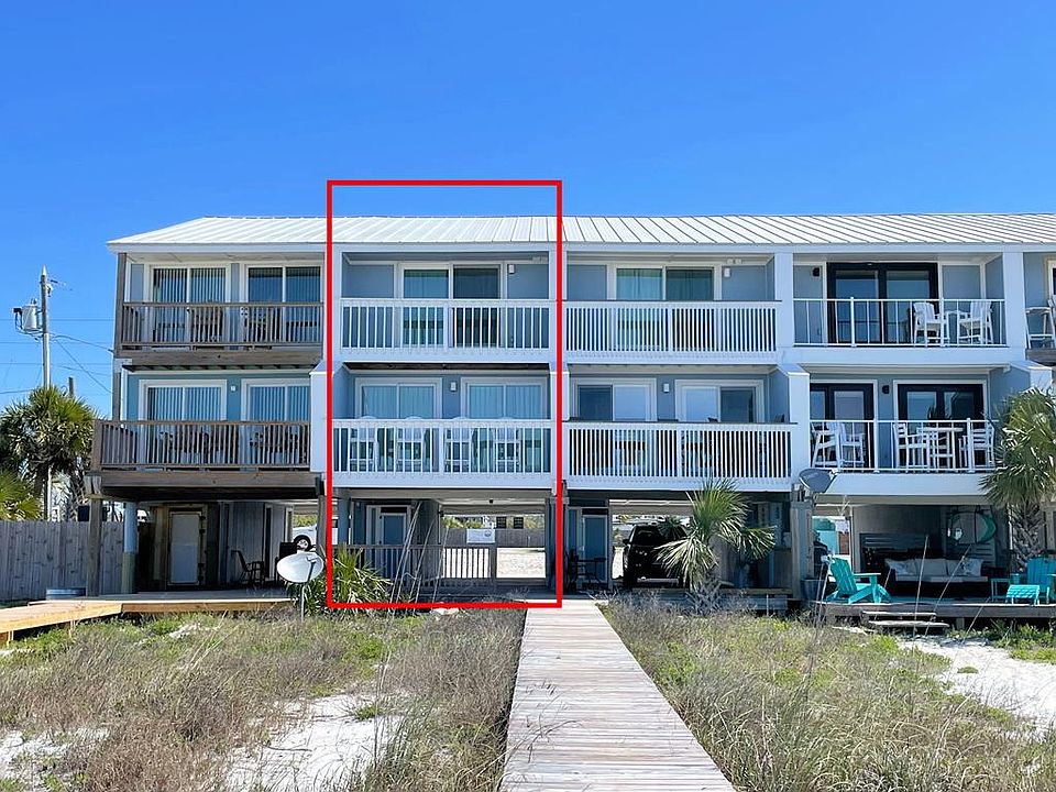 GULF FRONT 3BR/2.5BA townhome in St. Joe Beach. This home was completely redone after Hurricane Michael. Everything is new including framing, sheetrock, paint, floors, stainless appliances, custom cabinets, quartz counters, toilets, showers, wood ceilings, HVAC, decks & siding. With 1501 sq ft living space, the open floor plan features fabulous gulf views from the living, dining and kitchen areas. A gulf front deck provides a great place to enjoy the views and sunsets. A guest bedroom & half bath complete the first living level. The second level boasts a gulf front master bedroom with a large private bath, a second guest bedroom and guest bath. The master bedroom also enjoys a private gulf front balcony to share gorgeous views & sunsets. The master bath features a large vanity, shower and large closet. Easy beach access via boardwalk!