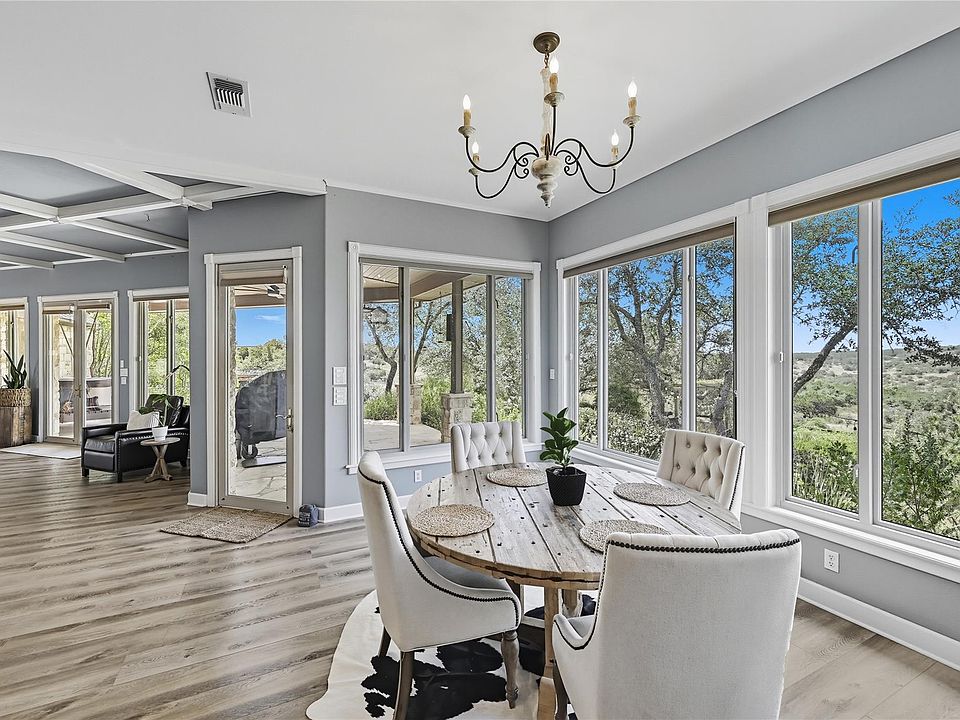 Endless possibilities! For the discerning buyer seeking a true family compound, this Hill Country retreat offers luxury, privacy, and limitless potential. Two legal lots are sold together—one featuring a custom main home capturing unbeatable sunsets and sweeping views beyond Devil’s Backbone, the other with a stylish new barn/Casita ideal for guests, income, or future resale. With a Wildlife Exemption providing significant tax savings and generational wealth opportunities, this property invites carefree living in style. Enjoy resort-inspired outdoor spaces, a gated entrance, and panoramic views just minutes from Wimberley and Dripping Springs—the ultimate Hill Country lifestyle with room to grow. Architecturally designed to highlight its natural surroundings, the home features a gourmet kitchen with expansive island and walk-in pantry, an open living and dining area with wood-burning fireplace, and floor-to-ceiling windows framing the endless views. The primary suite serves as a private retreat with a spacious walk-in closet, while additional rooms include a cozy office nook and large laundry/mudroom with ample storage. Outdoor living shines with a resort-style saltwater pool, pergola-shaded lounge, and custom smoker/grill area set against breathtaking vistas. The new 960 sq ft guest house/barn rests beneath majestic oaks with a fire pit gathering space—perfect for guests, extended family, or short-term rental potential. The chicken coop, cross-fencing, and storage buildings add charm and versatility for a true farm-to-table lifestyle. Fully fenced with a gated front entrance and located less than 45 minutes from downtown Austin, this property perfectly balances urban accessibility, tax advantages, and endless Hill Country views—a retreat designed for both enjoyment and investment. Additional acreage available – Price Upon Request.