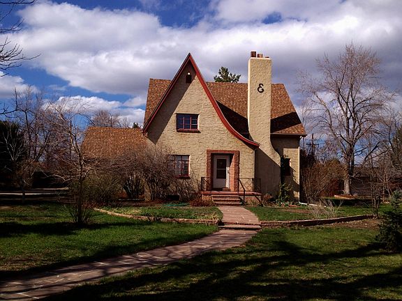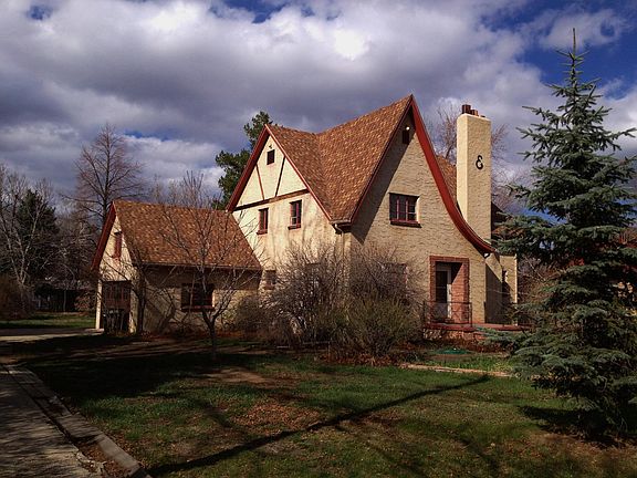Picturesque custom Storybook Style home on a large lot with mature trees and generous setback from the street. The house is 3108 sq ft including the full basement, plus a heated, 496 sq ft, attached 2 car garage with laundry and a large insulated storage room above the garage. Additional 1-car detached garage. 2 fireplaces with electric log sets, radiant heat in the main floor and baseboard radiators upstairs. Concrete drive with plenty of room for guests to park off street. Rooms include country kitchen, dining room, bedroom & bath on first floor, upstairs two large bedrooms (one with a sunny sitting room or nursery), an office or den, and bath. Recreation room, shop, and storage rooms in basement with many cabinets and shelves for sports toys and storage. Recently remodeled bathrooms, added insulation, air conditioning, new stove, refinished floors, fresh paint, new garage door and lawn sprinklers.