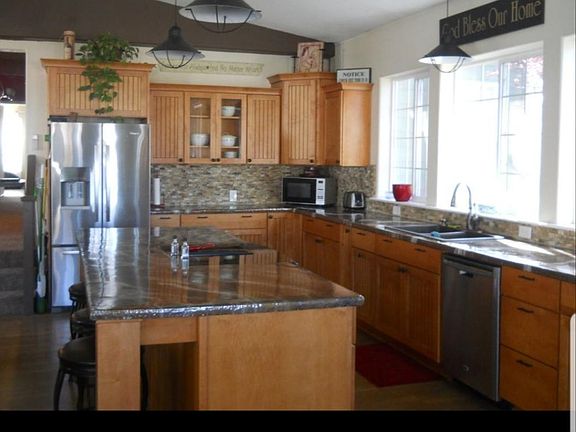 Beautiful 5 bedroom home. Large kitchen with island and lots or cabinets. Opens up into great room. Both bathrooms have been remodeled. Smaller area for sitting area with office. Large shop with detached 2 car garage. R.V. parking. Gorgeous covered patio to watch the sunsets. Includes water softner and all appliances. Full water rights.