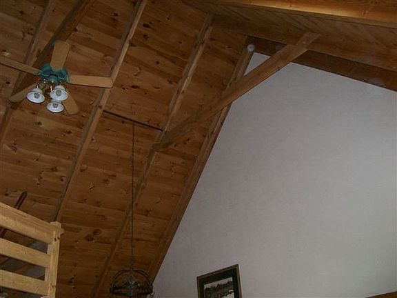 Authentic log home with fantastic great room, windowed on three sides, vaulted ceilings with exposed beams, skylights, hardwood floors, and two fireplaces (one woodburning, one gas). An abundance of large windows bring in plenty of natural light. Expansive decks, both covered and open surround the home providing the perfect setting for entertaining or relaxing and enjoying the extensive landscaping and two bubbling streams which run through the property. The basement consists of a craft room, exercise room (with wood stove), large heated workshop and a one car garage (and carport).