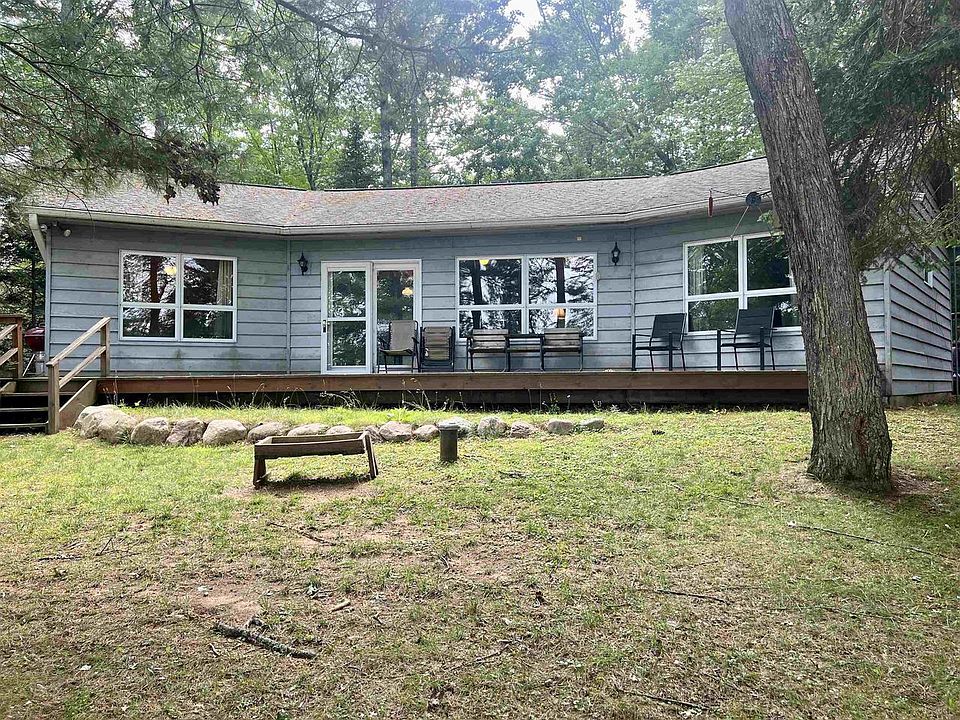 Lost Lake! Rare find on one of the nicest lakes in the area. Privacy, sand frontage, 3+ bedroom home, this one has it all! Spit bedroom design. Primary bedroom suite has gorgeous lake views. The secondary bedrooms are a nice size with a bonus (non conforming) bedroom in the lower level. Open concept with beautiful tongue and groove wood, some log accent plus wood beams for a great up north cabin feel. Lower level walkout leads to a gentle slope where you will find 191 feet of sandy frontage. Detached garage can be heated. For the investor, this property is zoned recreational so your rental options are wide open. This home has a long-time family history and has never been offered for sale before. Lost Lake is 539 acres and has a public boat landing.