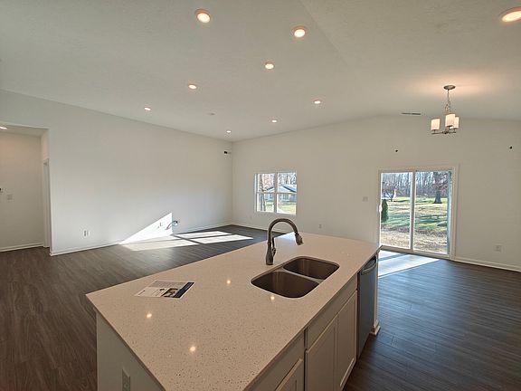 Discover The Chestnut, a Ranch-style home that redefines spacious living Upon entering The Chestnut, you're greeted by two well-appointed bedrooms and a full bathroom. As you venture further, the open floorplan unfolds before you, creating an expansive and inviting atmosphere. This layout is ideal for hosting holiday gatherings or special events, thanks to the seamless integration of the kitchen, dining, and living areas. The L-shaped kitchen, the heart of this home, ensures you're always part of the conversation. Equipped with a central kitchen island, this space becomes a hub for family and friends to gather. The Primary bedroom is a retreat in itself, featuring an single-step ceiling and a large walk-in closet that conveniently connects to the Utility room. This home features soaring 9' ceilings, vaulting up to 11', a 2-car front load garage with keyless entry, and 42" tall straight wall upper kitchen cabinets. The home also boasts 2 CM Quartz countertops, a 9' deep 50/50 sink, and the Primary bathroom outfitted with a tiled shower and flooring, a double bowl sink, and a convenience height vanity with a framed bi-pass glass door. Additionally, a water softener bypass rough-in ensures practicality and ease of living. The Chestnut is not just a house; it's a canvas for your lifestyle, offering flexibility, style, and affordable luxury in every corner.