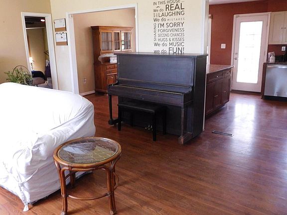 Sold in “as is” condition. A sweet home located on 2.31 acres. A large living room with a bright bay window with hardwood floors through the main level home. A circular flow to the kitchen and eat-in area. Beautifully updated kitchen with cream white cabinets on the uppers and maple cabinets on the lower. A large peninsula provides additional drawers and cabinetry space on both sides for storage. Granite counter tops, stainless steel appliances, and propane cooking as well. The kitchen opens to a large deck and views of the yard, garden area and the pool. The primary bedroom is where the garage used to be. It has a vaulted ceiling, painted cement floors, separate walled unit (not currently working), walk-in closet, and large primary bath. The primary bath has a clawed tub, two sinks, tiled flooring, and a multi-nozzle shower. The upper level has hardwood floors with three spacious rooms. The largest room has access to the full bath from the bedroom as well as a ceiling fan. The 3rd bedroom has a ceiling fan and windows on opposite walls adding great light. The 4th bedroom has access to an attic storage area. The lower level has vinyl flooring and is quite large with full light windows. There is a full bath with a shower and tiled flooring. There is a laundry area to the left as you enter the recreation room as well as a utility room with a furnace and tankless hot water heater (both run off of propane). There is a windowed door to the backyard with a dog door to a walk-up to the deck area in the back of the home. The pool is fenced and the pool’s liner needs to be replaced but the pump is only a few years old. There is a circular trampoline that the chickens love to use as shade and yes, there are chickens! A lovely “Egg Plant” chicken house and all the equipment with the chickens can convey. The property continues past the deer fencing for the chickens but will need to cleared if used. There is a large shed to the left of the home for storage and a graveled parking area in front of that shed for easy turnarounds and parking. A small dog run has been converted to a greenhouse for those who love to grow things too. There is a garden area to the left of the home to bring them to life. Needs work but has lots of big items taken care of such as water soften 2018 HVAC, septic system, and roof in 2015, new piping, water softener, and well cap in 2017. Stove and dishwasher installed 2021. Come and see this little slice of heaven.