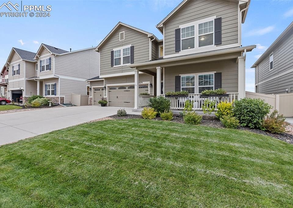 Welcome to this gorgeous, move-in-ready home in the highly desirable Cumbre Vista community! This home looks and feels brand new, with gleaming floors that greet you as you enter. The main level features an open layout, including a versatile office, powder room, spacious family room, and a light-filled kitchen. The upgraded chef's kitchen is a dream, boasting granite countertops, a walk-in pantry, and a large island for convenience. Natural light floods the open floorplan through the home's expansive windows. The spacious primary suite includes an adjoining 5-piece bath and a walk-in closet, while the upstairs loft provides the potential to easily convert into a 4th bedroom. Step outside to the covered patio, perfect for entertaining, and enjoy the professionally landscaped front and back yards, complete with an automatic sprinkler system. The covered patio and thoughtful layout of neighboring homes create a peaceful and private setting. Additional features include an oversized 3-car garage, a new roof and gutters, a new microwave, and fantastic neighbors in a quiet neighborhood. Conveniently located near schools, hiking trails, restaurants, and St. Francis Hospital, with easy access to Peterson Air Force Base and the Air Force Academy. This home is truly move-in ready. Schedule a showing today—this gem won’t last long!