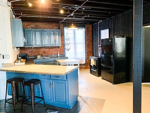 HUGE AUTHENTIC FACTORY LOFT in circa 1907 Marathon Motor Co. building. Soaring Ceilings! Lots of windows & light Original EXPOSED BRICK WALLS, iron and heart pine beams Large bedroom upstairs. 2nd bedroom up spiral staircase. Enclosed large laundry/utility room. Complete kitchen w/dishwasher. Large outdoor porch. Incredible space for photographers, artists, creative spirits 8 Apartments in building. Cool neighbors. Family owned building. Owners pay trash and sewer. Renters pay utilities. Gas & electric thermostat controlled by renters.