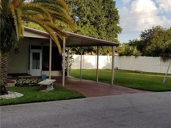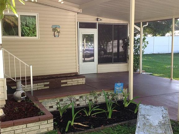 Don't wait, move in now to this completely updated, turnkey furnished home in a private setting. Active 55+ community where you own your land, NO LOT RENT. Low maintenance fees of $127/month includes: water, sewer, trash, cable, community, pool, manager, shuffleboard, and more. Upgrades include: new plywood sub flooring, new windows, new vapor barrier, new membrane roof with transferable warranty, new hardwood floors, ceramic tile bathrooms, new toliet and vanity, new closet doors, and A/C in 2012. Tastefully furnished. Come enjoy the winters or enjoy the Florida Life Style all year long. Patio out back, screened in lanai and front porch. Convenient and inexpensive living.