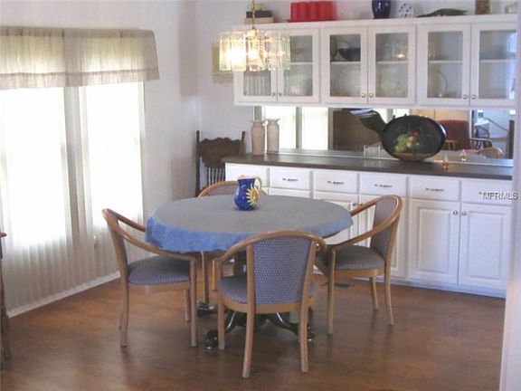 Great location on Palm Lake Estates 26 acre lake. Nice, updated double wide with air-conditioned Florida room and glassed-in lanai overlooking the private dock and lake, where you can enjoy the ducks, numerous waterbirds and fish jumping. Small boats are allowed on the lake. The home features laminate flooring throughout the main living areas and is being offered turnkey furnished. The master bedroom has lots of storage, while the second bedroom doubles as a den/office or a guest room, as it features a built-in Murphy bed. Popular Palm Lake Estates boasts a large clubhouse, heated pool, shuffleboard, wood-working shop and lots of social activities. Over 55 and, sorry, no pets. A short drive takes you to the fabulous Gulf beaches.