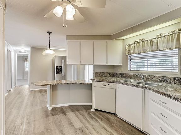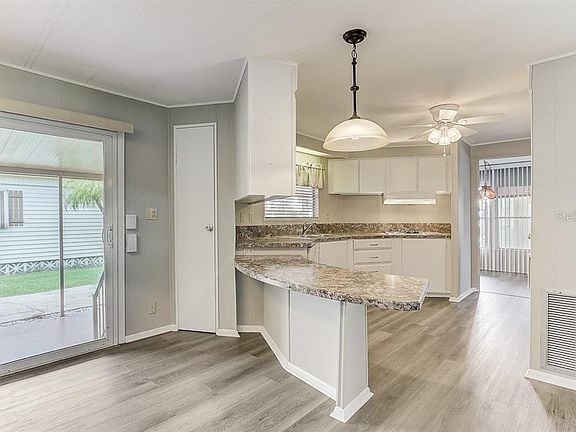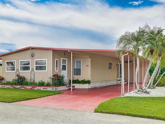 Don't miss out on this move-in ready, updated 2 Bedroom/2 Bath home in the centrally located Palm Lake Estates! You'll love the recent updates, including vinyl plank flooring, gray carpet and fresh paint. Enjoy relaxing or entertaining in the large living room, separate dining room, and the air-conditioned Florida room. The kitchen, with its light and bright cabinetry and lots of counter space, also has an eat-in area with space for a table and chairs. There's ample storage throughout, including two pantries in the kitchen, and walk-in closets in both bedrooms. The master bathroom has an easy-access walk-in shower, and two additional closets, perfect for storing linens or your favorite keepsakes. An outdoor shed houses your Maytag washer and dryer, a workbench, and space to organize all your tools. Store your bikes and beach chairs in the adjacent closed-off breezeway! The AC was replaced in 2017, and the Seller is offering a 1-Year Home Warranty. Palm Lake Estates is an active 55+ community, including a clubhouse with pool table and library, a beautiful heated pool, and shuffleboard courts. With shopping, restaurants and the beach a short drive away, you'll never tire of things to do! Make your appointment today!