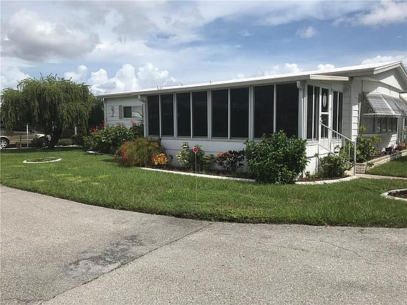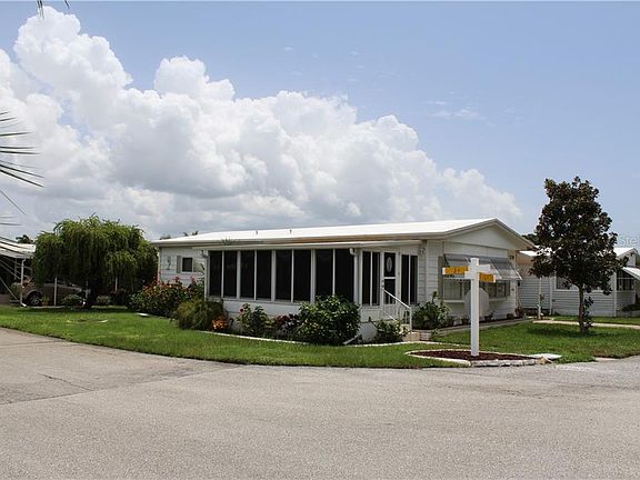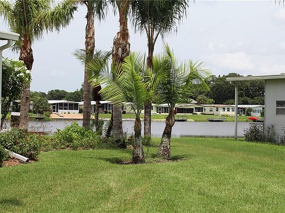Lovely 2BR/2BA home in the well manicured, very active 55+ Palm Lake Estates. Relax on your air conditioned front lanai while playing cards, watching TV or just enjoying your view of the beautiful lake and lush tropical landscaping. You can also unwind while relaxing in your own private hot tub located in your screened side porch. The home has an open floor plan with the living area open to the kitchen and dining room. Comes partially furnished (inventory list attached to listing). You'll see the home has been well cared for. New AC in Lanai (2019), Kitchen Disposal (2019), Membrane Roof (2017), Hot Tub & Screened Side Porch (2017), Range/Dishwasher/Microwave (2013), Central A/C (2011).
