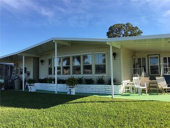 Wow! You'll love the lake view from the living room of this spacious manufactured home in Palm Lake Estates. If you like entertaining or having family visit, the over-sized eat-in kitchen plus formal dining room provide lots of space. In addition there is a large Florida room for added living space. One of the unique features of this home is the vacant lot next door, owned by the park which will never be built on. Some of the other features include newer windows, a 4 yr old A/C unit, laminate and tile flooring, vinyl siding and more. Palm Lake Estates is a much sought after location with friendly residents, a large heated pool, large clubhouse with lots of activities and shuffleboard. It is also located within a short drive to shopping, restaurants and the beaches. 55+ community and no pets! Low maintenance fee of only $120 per month.