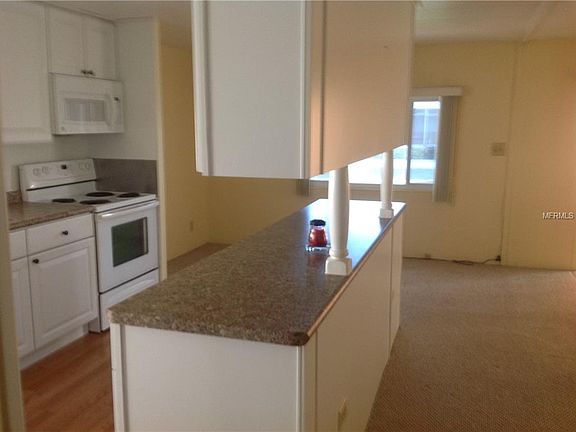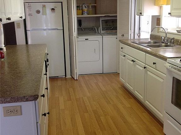 BEST PRICE $69,900. You will love the counter space in this updated kitchen with new cabinets, counter tops and appliances. Your updated Maytag washer and dryer are conveniently located in the kitchen . Toilets in both bathrooms have been updated. Updated windows. Master bedroom has a walk-in closet and wood flooring. Master shower is a walk in with handicap handles. Glassed enclosed Florida room. Extra storage off the Florida room. Vinyl siding and has skirted around the bottom. Wheel chair ramp. Active 55+ community, clubhouse, pool, low maintenance of $130/month includes: water, sewer, trash, and cable TV and Internet. Convenient location to shopping, eating places, airport, and the beaches. NEW PRICE: $69,900.