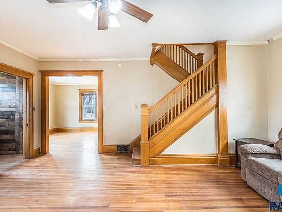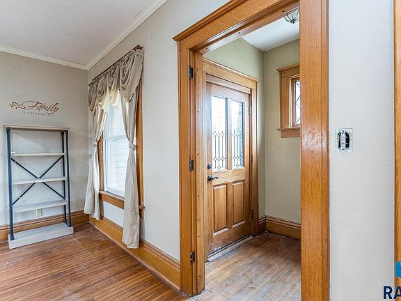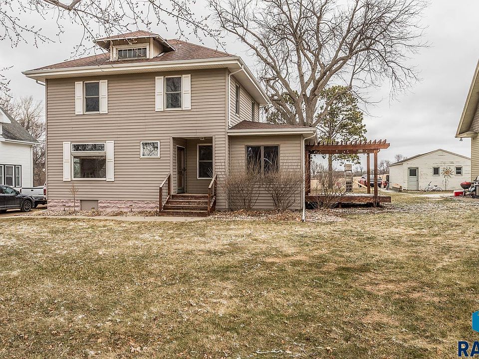 Here is a great opportunity for a small town feel and close to Sioux Falls! This charming two story home has been well maintained featuring original woodwork though-out; hardwood floors, high ceilings and large windows that allow natural light to settle into each room, creating such a warm, inviting space to call home. There is a large kitchen with newer stainless steel appliances; french doors off the living space that walk out to a pergola covered patio so you can enjoy outdoor living too without any backyard neighbors! All the bedrooms are on the upper level as well as bonus space in the basement. There is also an oversized attic with lots of potential for living or storage.