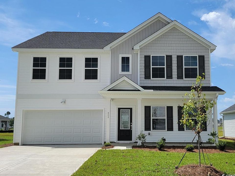 Welcome home to the Turner! This two-story home features five bedrooms, three full and one-half baths, an office with French doors and a covered back porch. The kitchen comes equipped with white cabinets, granite countertops, and a walk-in pantry. The open-concept kitchen, living room, and dining room make entertaining easy. Upstairs you'll find the spacious primary bedroom with en-suite bath. Primary bathroom features include a five-foot tile shower, raised vanity with dual sinks and quartz countertop, two linen closets and a large walk-in closet. The remaining four bedrooms upstairs share two full baths. There is also a loft, perfect for movie nights. Laundry room is conveniently located upstairs. Irrigation, garage door opener, architectural shingles are included! Merrill Villas is in the heart of Carolina Forest offering convenient access to amazing shops, restaurants, championship golf courses, Myrtle Beach International Airport, and is less than five miles to the beach! Interior photos are of a similar floor plan and for reference only. Estimated completion date early August 2024.