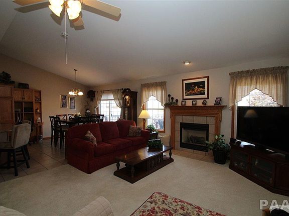 Beautiful one owner home! Charming 29' covered front porch leads into fireplaced living room with cathedral ceiling. Vaulted, oak kitchen with breakfast bar, pantry, stainless steel appliances & planning desk. Slider off dining room to deck with built-in benches. Convenient main floor laundry plus a heated garage! Master suite offers cathedral ceiling, walk-in closet, dual sinks, whirlpool tub and slider to 12' x 7' deck. Incredible lower level family/rec room with daylight windows and built-in wet bar. New shingles 2014. Vinyl privacy fenced yard with irrigation system and gorgeous grounds!