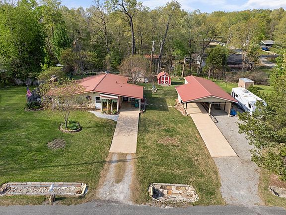 Charming Home in Bull Shoals Ideal location and Immaculate Condition! This 1222 sq ft residence on ½ acre m/l offers the perfect blend of comfort and Convenience. Fenced backyard, RV parking, boat parking, large 2 car carport with attached 290 sq ft workshop. A She Shed, additional out-building perfect for Lawn equipment, and a 1 car attached carport. Home features two spacious Bedrooms, 1 ½ baths, living room, ceiling to floor glass dining room, & family room Has wood burning fireplace with blower. Unwind in the H&C sunroom perfect for year round enjoyment. Step outside to find the enchanting garden, brimming with vibrant Blubs, plants and Artistic décor, creating a peaceful oasis to enjoy morning coffee or evening sunsets under the covered deck complete with Hot Tub!! Within 5 block Radius essential amenities include grocery store, post office, Bull Shoals Lake, Famous White River, police and fire stations, and a beautiful state park ideal for Relaxation and adventure.