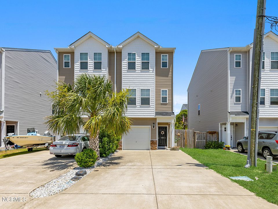Step into this expansive three-story townhome spanning 1901 square feet! On the ground level, discover a convenient one-car garage, a cozy bedroom leading out to a backyard patio, and a full bath. Ascend to the second floor, where an open kitchen equipped with all appliances awaits, alongside a generously sized living and dining area. The third floor boasts a luxurious master suite featuring a private bath with a soaking tub and separate shower, as well as a third bedroom and another full bath. Nestled in a charming neighborhood of townhomes without the constraints of an HOA, this residence sits near the state park just off Dow Rd, offering effortless access to shopping, beaches, and restaurants on the island or a short drive to Wilmington. Don't miss out - schedule your tour today!