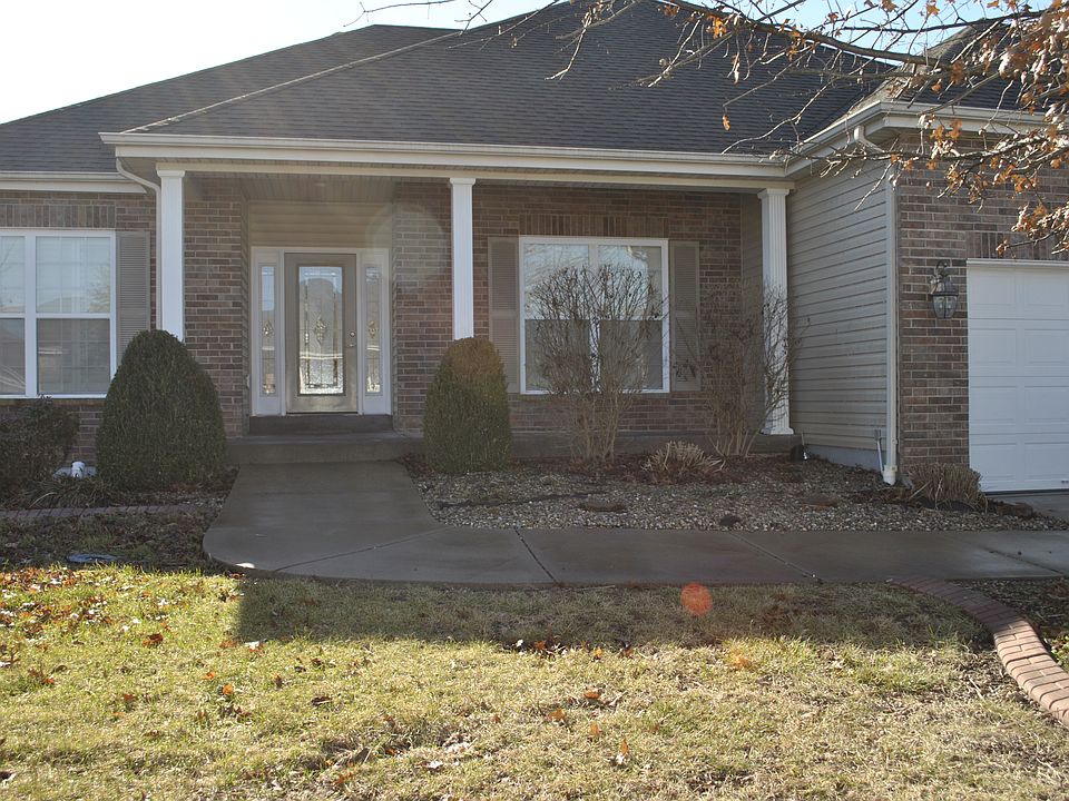 Beautiful 3 bedroom and 2 full bath home in the Quail Ridge Subdivision. Home has numerous upgrades such as 9ft ceilings, continuous brick landscaping border, intercom and sprinkler system, central vacuum, water softener unit, energy efficient HVAC system, wrought iron spindled railing and custom plantation shutters. Dining room has trey ceiling, wainscoting and custom metal work. Master bath has a double sink, large corner tub and separate shower. Master bedroom has 2 closets, including a walk in closet with shelving by Closet Company and a trey ceiling. Family room has vaulted ceilings with floor to ceiling brick fireplace. There is main floor laundry with Closet Company shelving. Kitchen has stainless steel appliances, with large pantry, raised breakfast bar and eat in area that leads to the 150 sq. ft. sunroom. 2 car garage is finished. Full basement unfinished with roughed in plumbing.