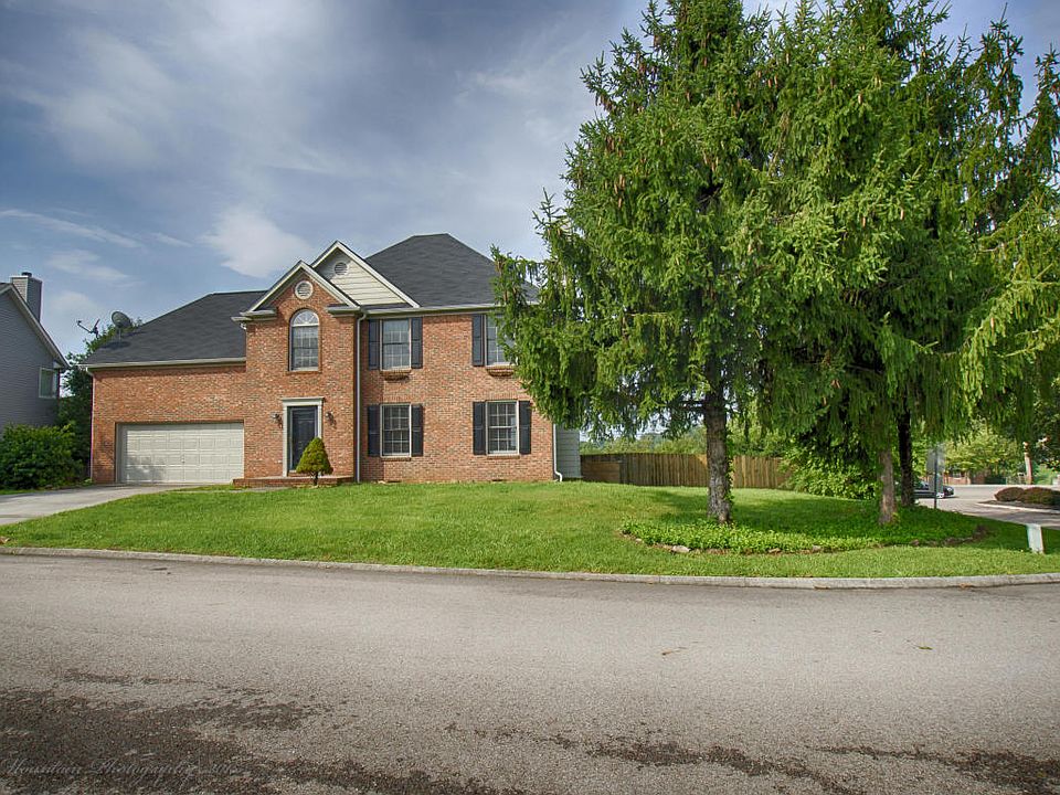 Level fenced back yard with playset for the kids**Great Farragut location (near parks and jogging trails, marina, and Turkey Creek Shopping.) 3BR + BIG bonus room. Real Hardwood floors, granite island/counter tops in kitchen, tile floors in kitchen and baths. Wood burning fireplace in great room. New light fixtures. Built-ins in bonus room and master BR closet. Master Bath has Garden soaking tub + separate shower. Deck off kitchen overlooks fenced yard. **All Farragut Schools**