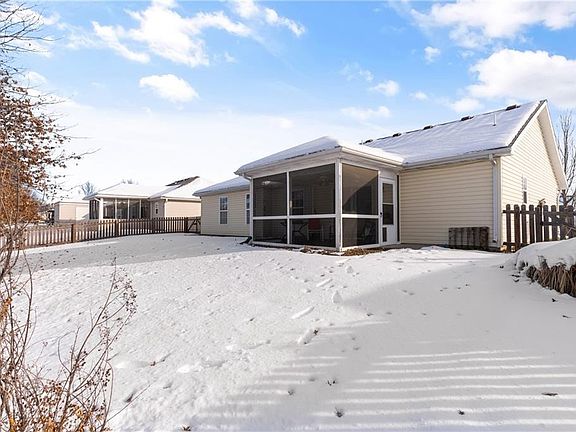 Main Level Living Located In Raymore! This beautiful zero-entry(NO STEPS) home sits in the highly sought after Villa's of Brookside, a neighborhood that displays pride in ownership! The interior of the home offers a semi open floorplan, with a large living room and gas fireplace feature. The kitchen has abundant storage, updated appliances, and beautiful natural light. This home has 3 bedrooms & 2 baths, including a master suite with walk in closet and dual vanity. Exterior is low maintenance with vinyl siding and brick accents. Plenty of storage and parking in the 2 car garage. You will thoroughly love the screened-in back porch that overlooks your fenced back yard and Brookside's ponds! The Villas of Brookside is beautifully maintained and features a community pool. Brookside is NOT an age restricted community!
